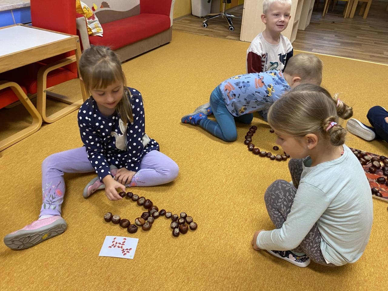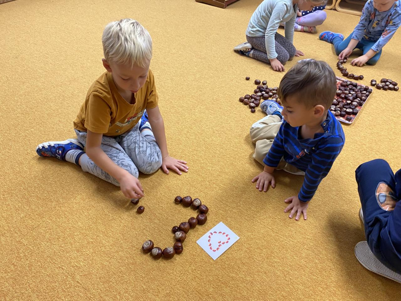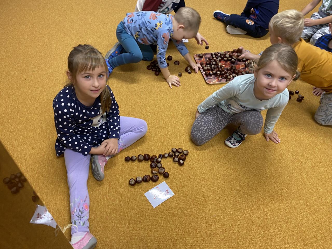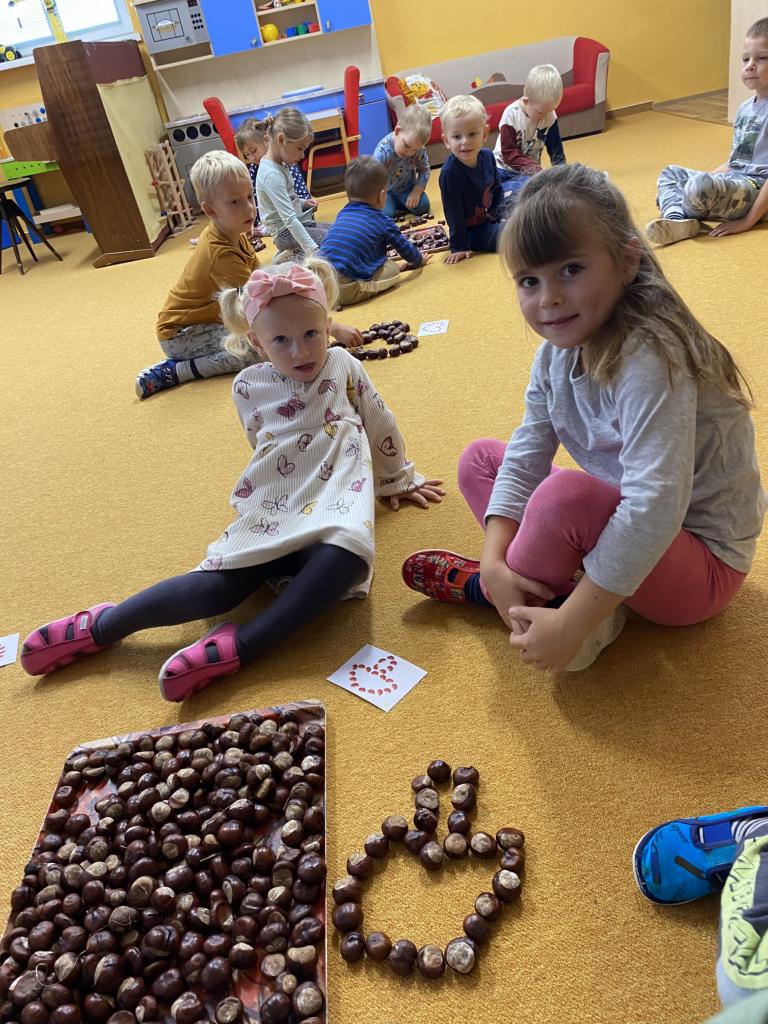 Sběr kaštanů a stavění obrázku z nich společně se sovičkama.