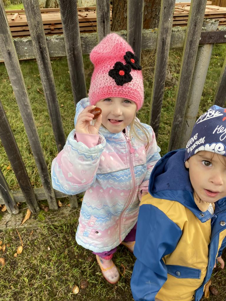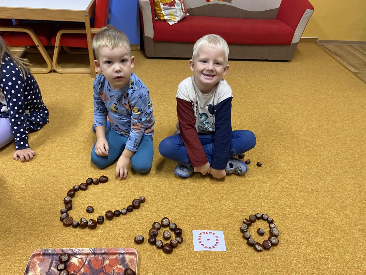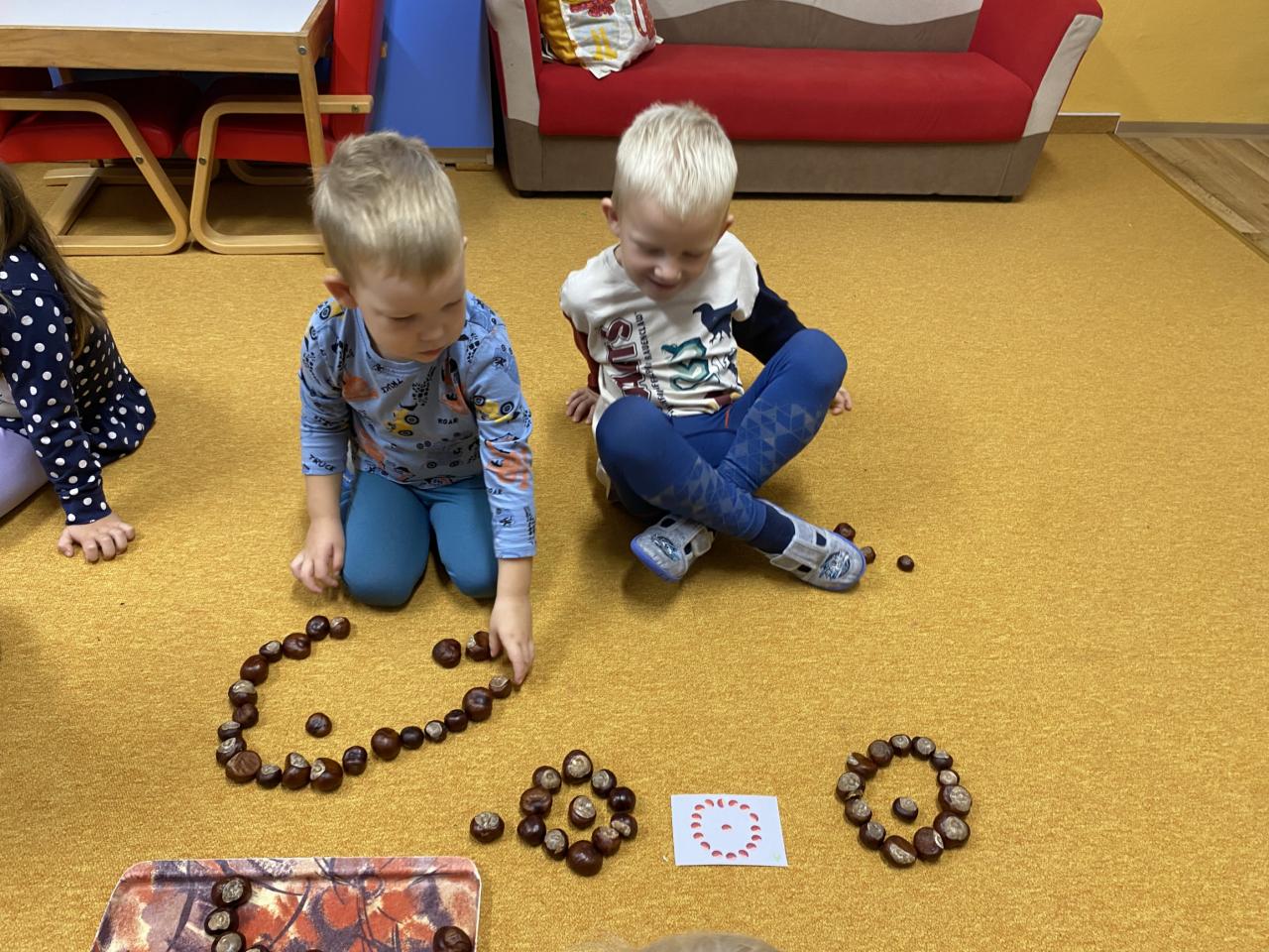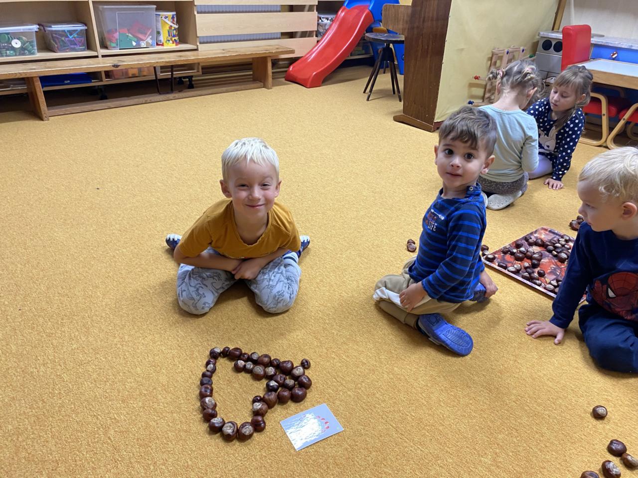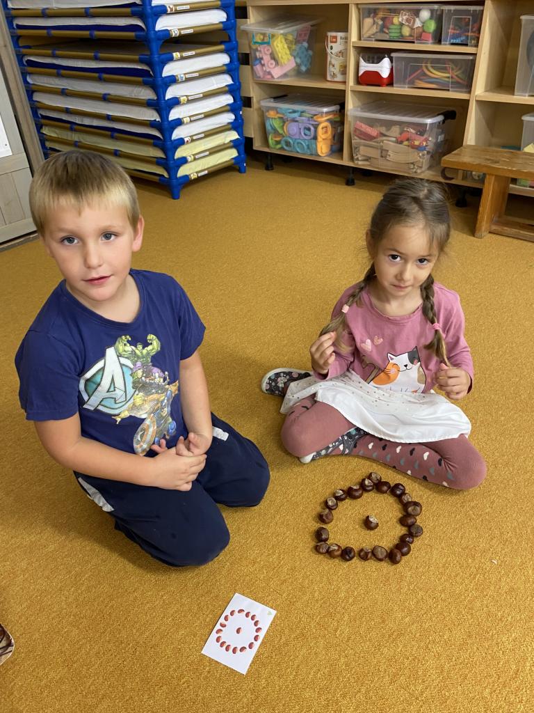 Sběr kaštanů a stavění obrázku z nich společně se sovičkama.