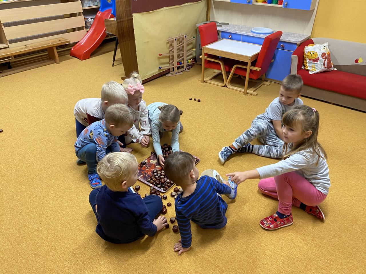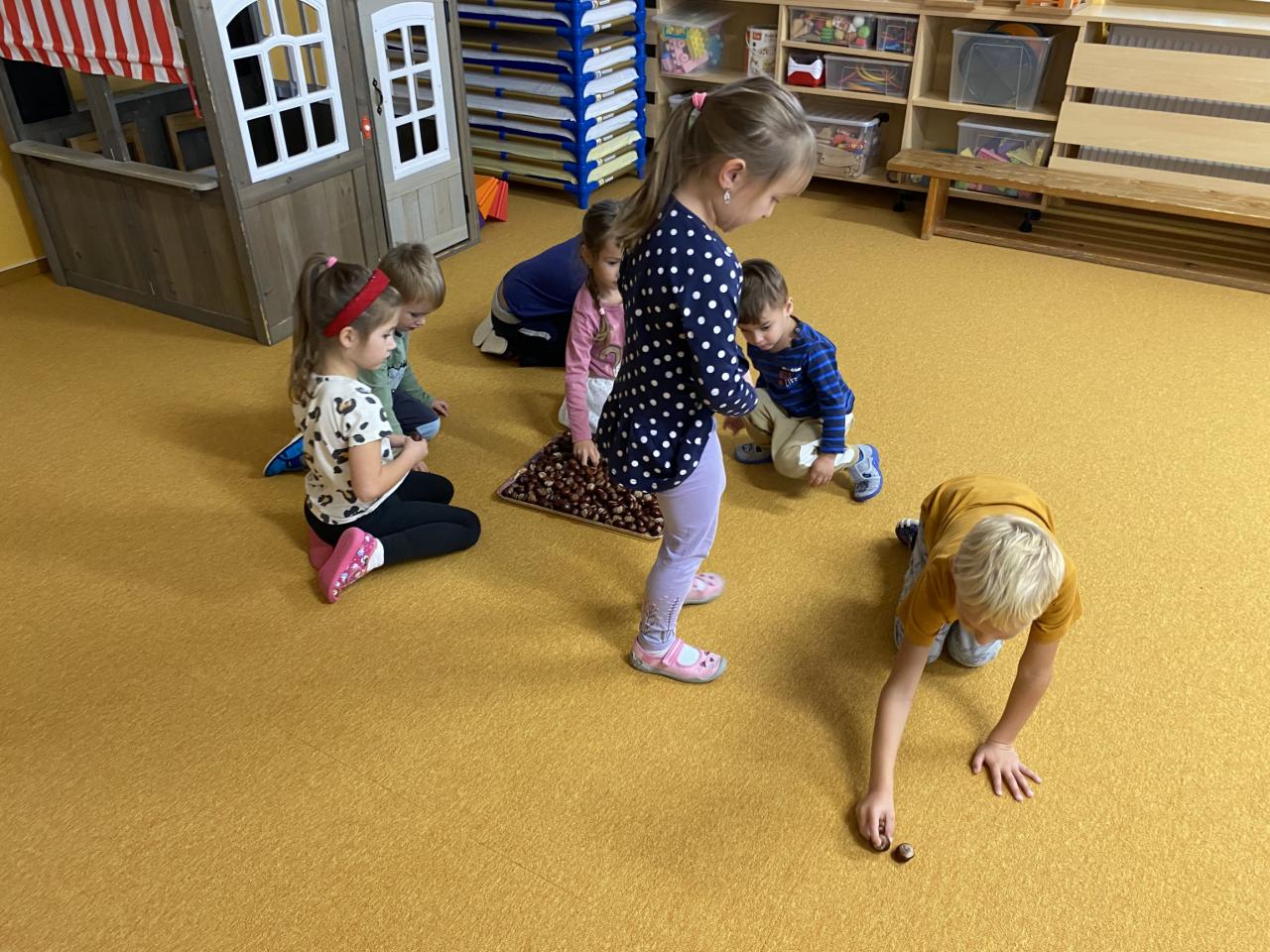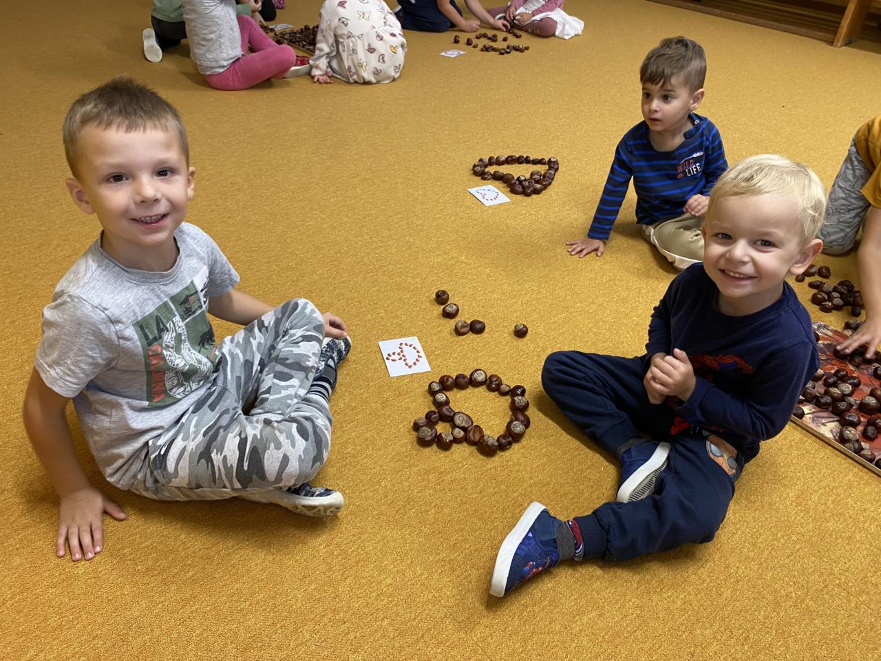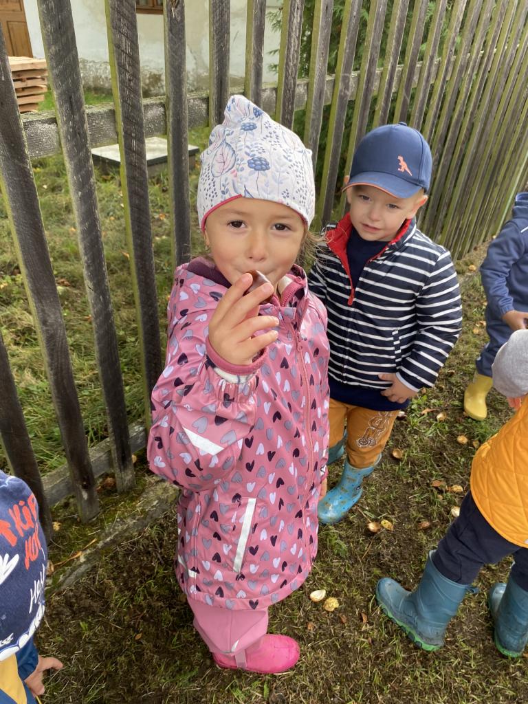 Sběr kaštanů a stavění obrázku z nich společně se sovičkama.
