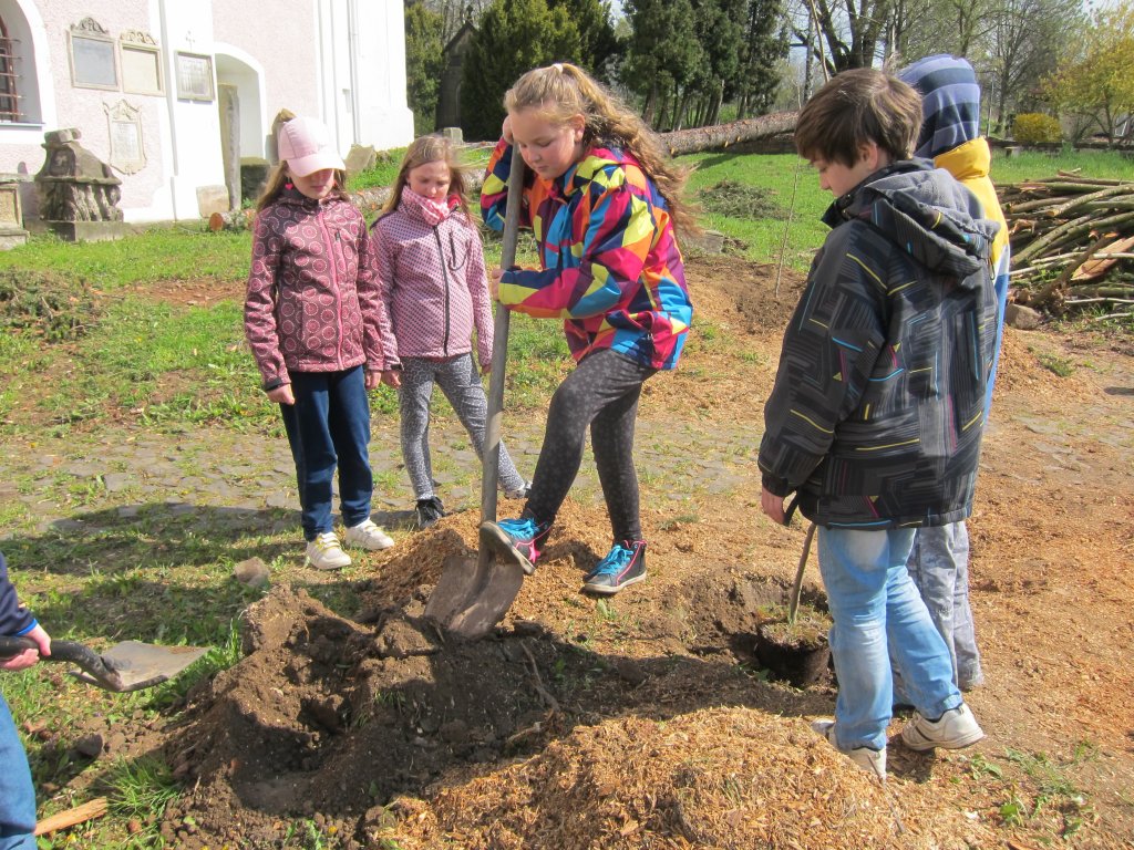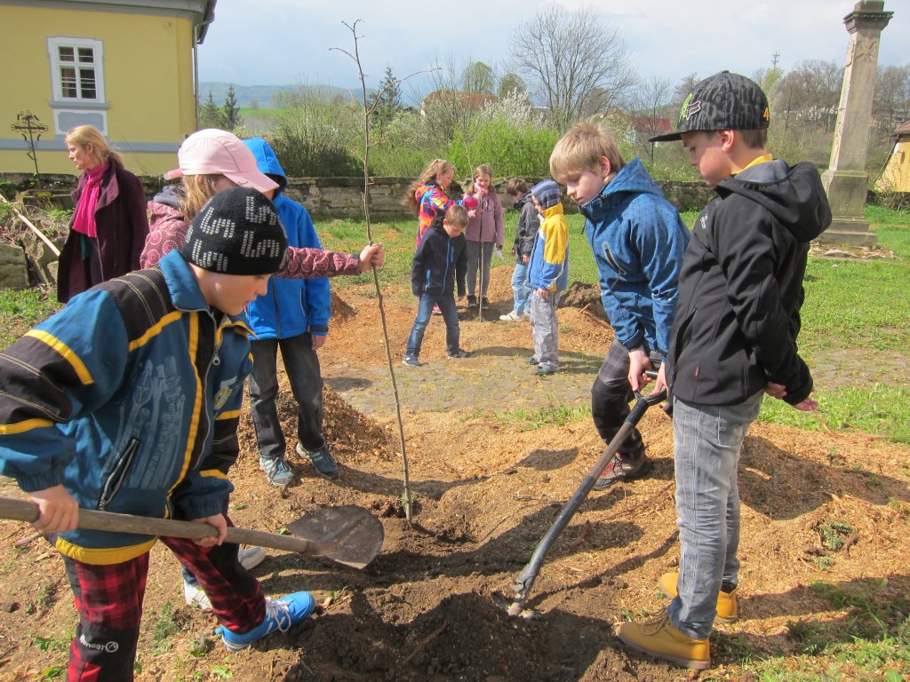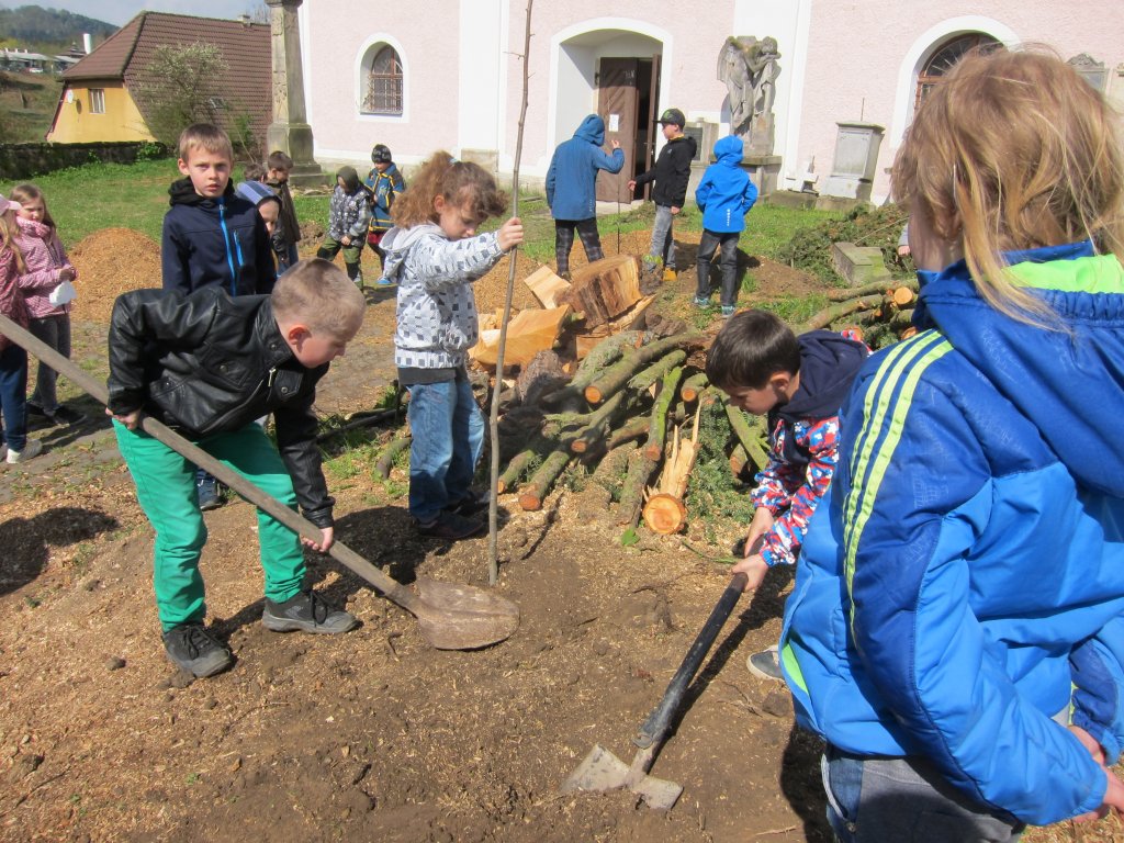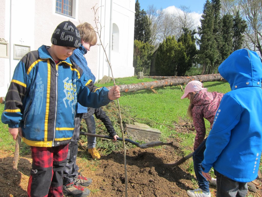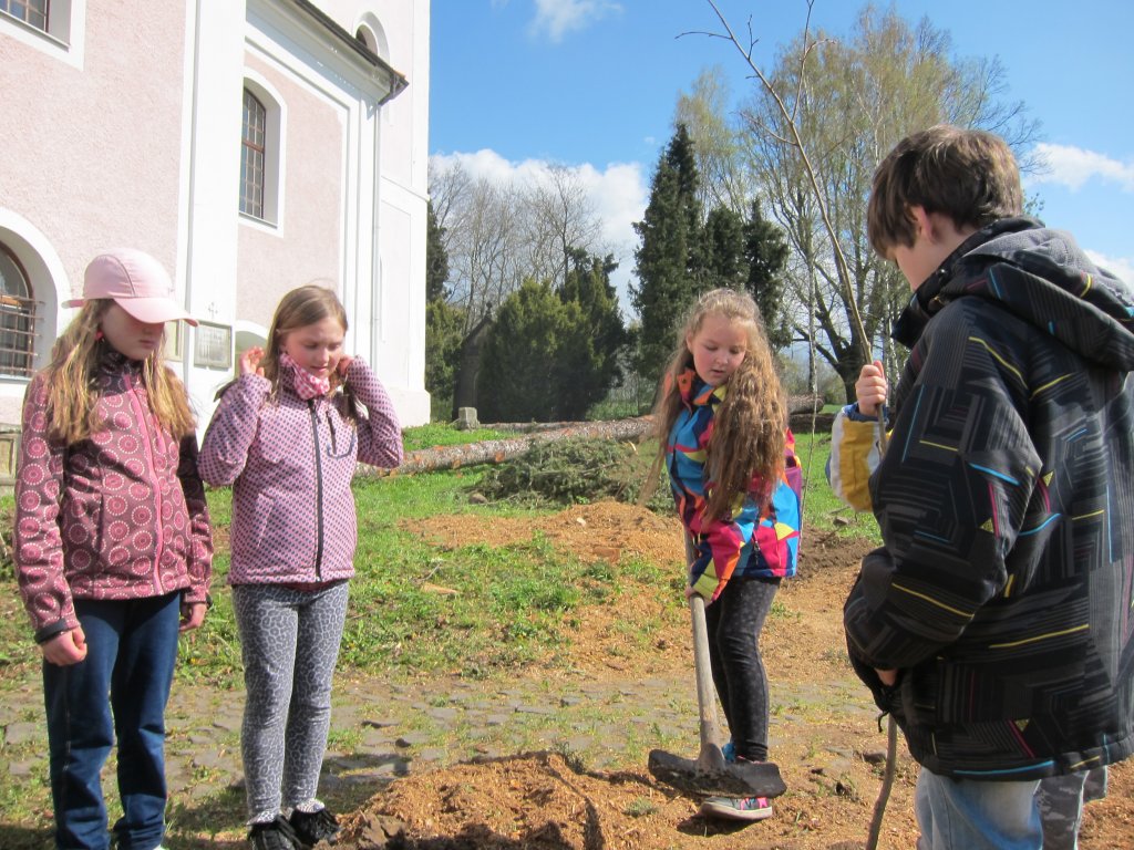 Sázení lip před kostelem