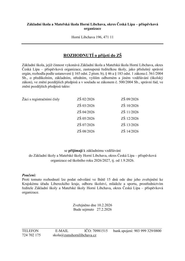 Rozhodnutí o přijetí do ZŠ 2026.pdf Typ: PDF dokument, Velikost: 295.11 kB