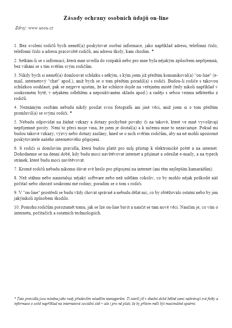 Osvětový leták UOOU pro mládež